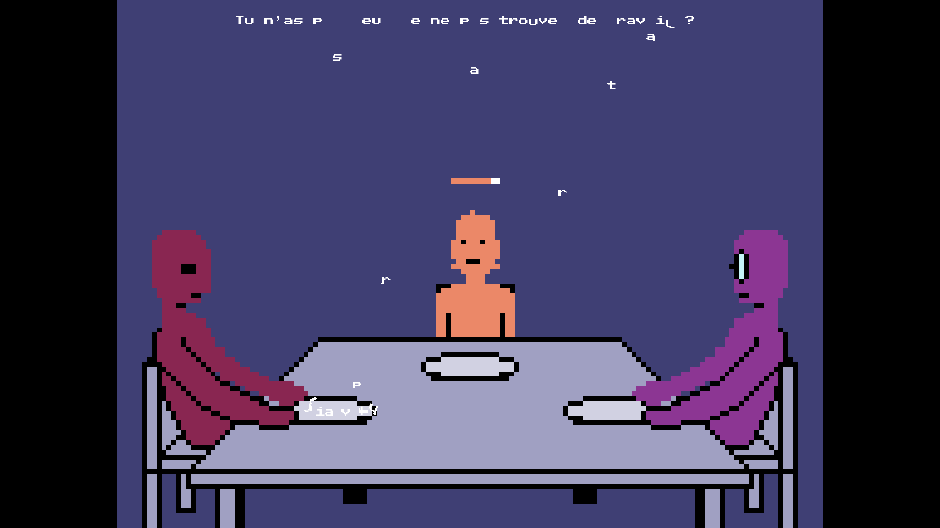 Dans les interfaces, la souris n'est pas visible, c'est un peuperturbantnvm, je viens de voir que la navigation est prévue au clavierC’est vraiment sympa comme mécanique et manière de raconter l’histoire! Hâte de voir les autres niveaux !